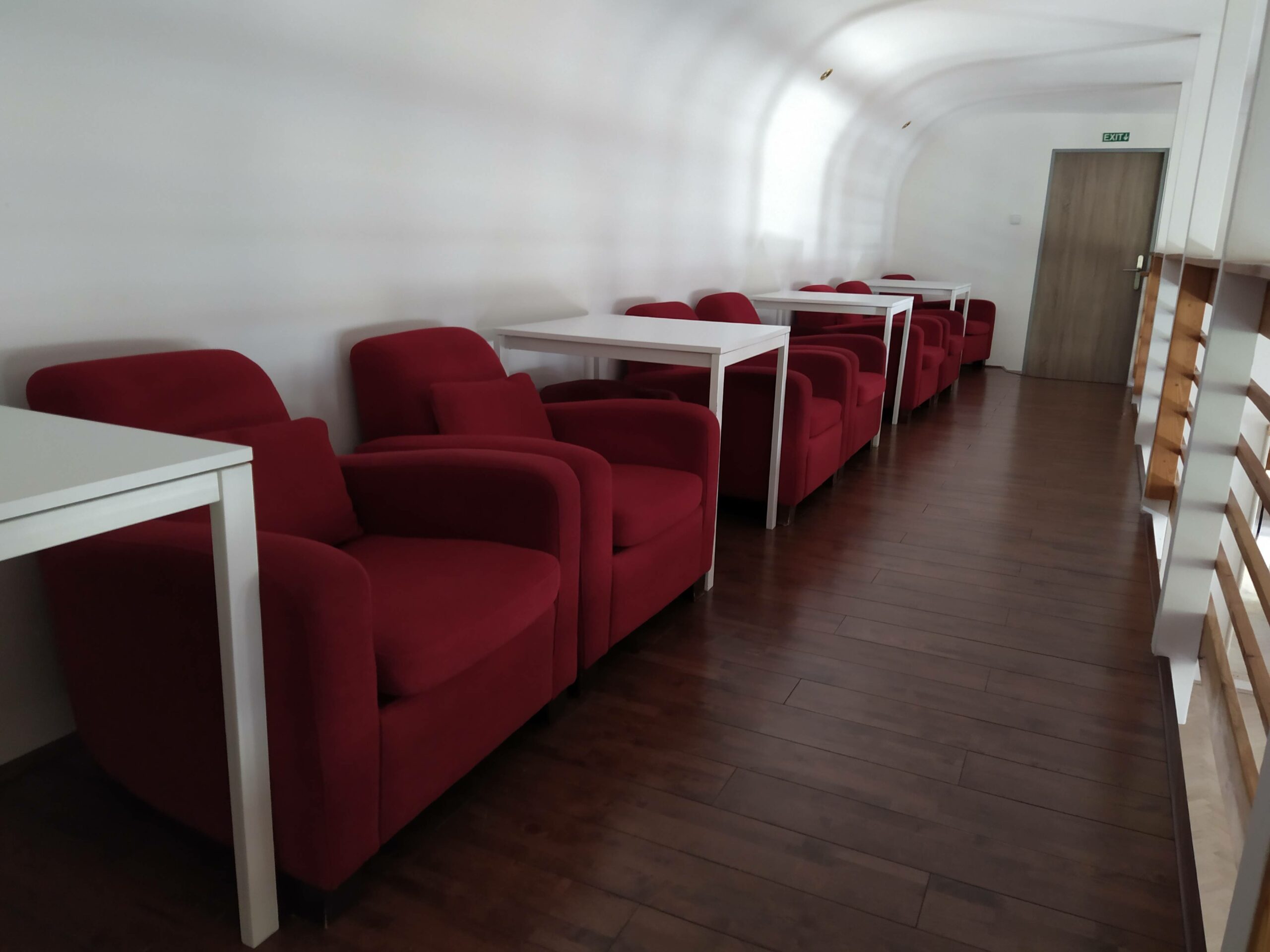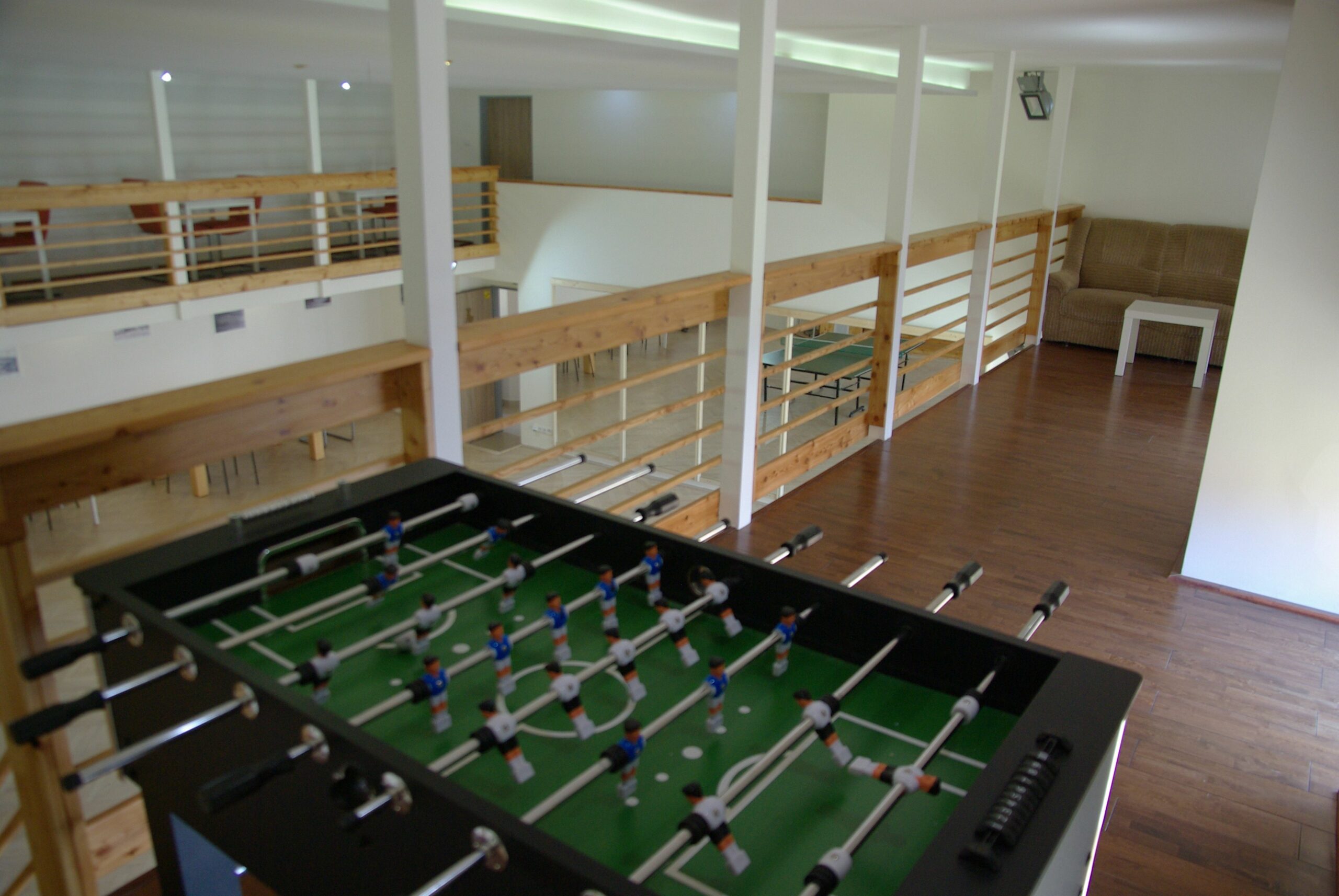- Prostor, který se přizpůsobí: Díky variabilnímu uspořádání lze sál snadno transformovat pro jakoukoliv událost. Chcete prostor pro hry s dětmi, stačí složit dva pingpongové stoly. Nebo potřebujete velký prostor pro posezení? Žádný problém, jsou tu kromě stálého posezení k dispozici skládací stoly a stohovatelné židle.