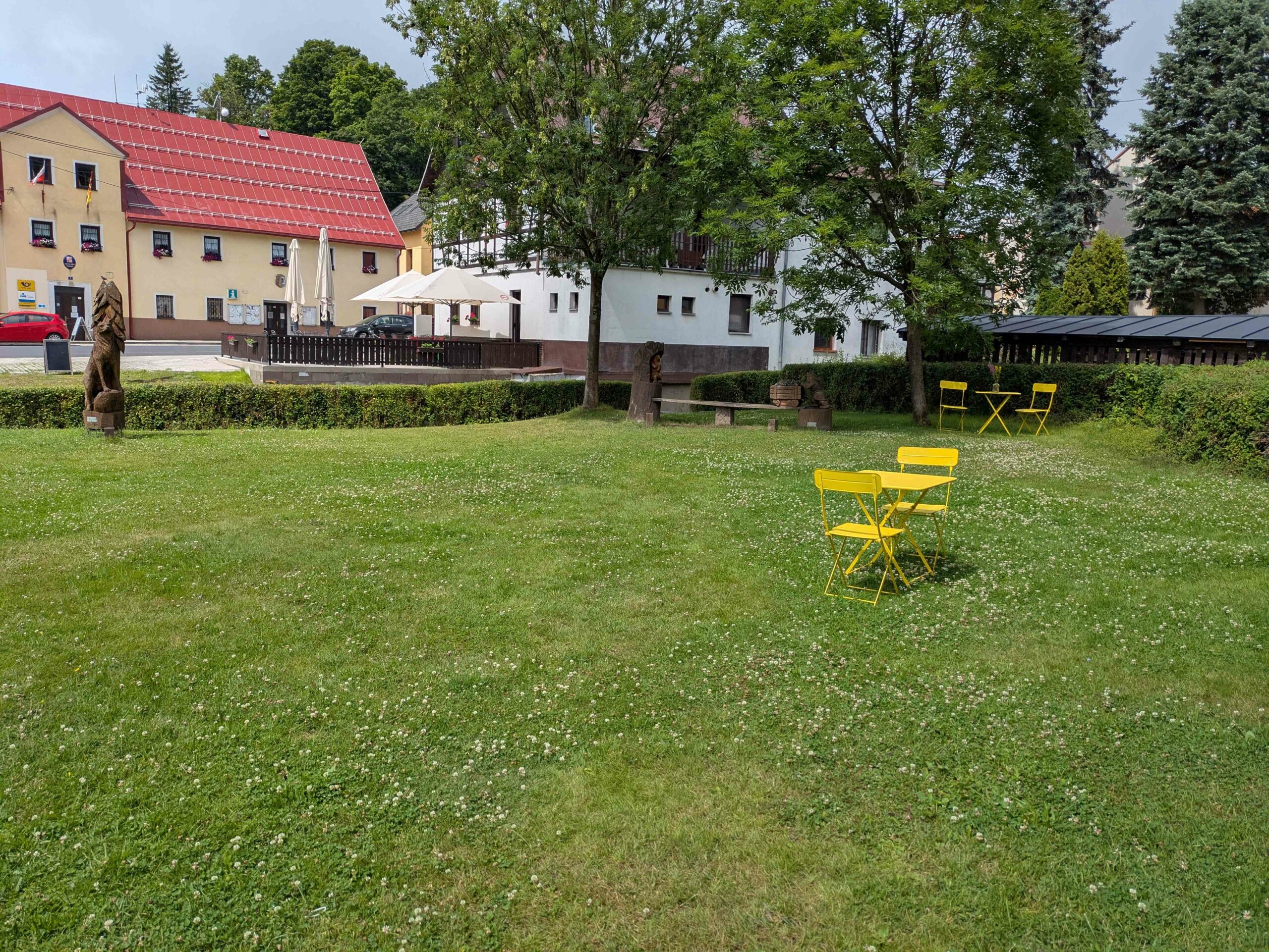 Přímo za chatou na vás čeká prostorná terasa s posezením a grilem, ideální pro letní večery plné vůně jídla a smíchu. Je odtud výhled na hřiště s umělým povrchem, které je hned u terasy přístupné ze sálu. Nemusíte se bát, že byste ztratili z dohledu děti při jejich hrách.