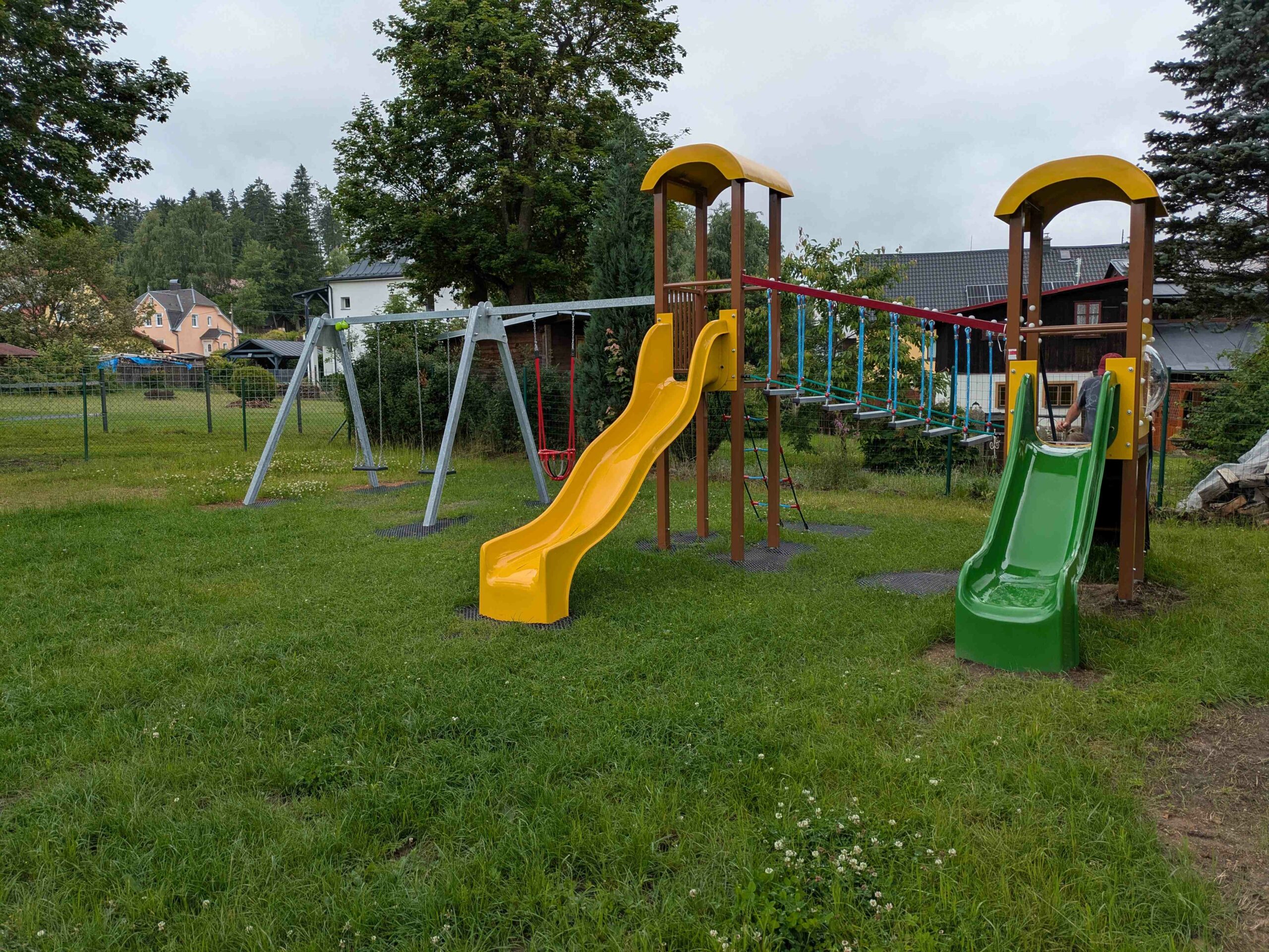 Celý prostor je obklopený zelenými loukami a vzrostlými stromy, které dodávají místu klidnou a soukromou atmosféru. A co víc, hned za hřištěm se zvedá kopec, který v zimě láká k sáňkování a bobování, zatímco v létě vybízí k relaxaci v trávě nebo k procházkám. Pár metrů odtud je obnovený Perninský lesopark se spoustou cestiček a laviček. Ideální pro ranní rozcvičky, dětské stopovací hry nebo odpolední relax. Perfektní místo pro zábavu i odpočinek v každém ročním období!