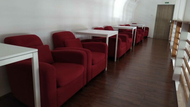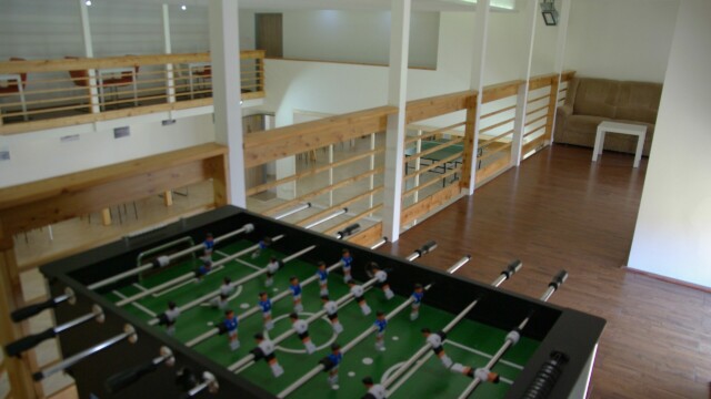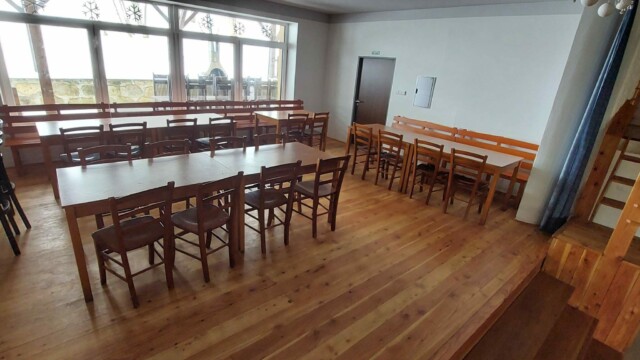 - Prostor, který se přizpůsobí: Díky variabilnímu uspořádání lze sál snadno transformovat pro jakoukoliv událost. Chcete prostor pro hry s dětmi, stačí složit dva pingpongové stoly. Nebo potřebujete velký prostor pro posezení? Žádný problém, jsou tu kromě stálého posezení k dispozici skládací stoly a stohovatelné židle.
