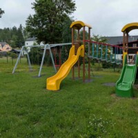 Celý prostor je obklopený zelenými loukami a vzrostlými stromy, které dodávají místu klidnou a soukromou atmosféru. A co víc, hned za hřištěm se zvedá kopec, který v zimě láká k sáňkování a bobování, zatímco v létě vybízí k relaxaci v trávě nebo k procházkám. Pár metrů odtud je obnovený Perninský lesopark se spoustou cestiček a laviček. Ideální pro ranní rozcvičky, dětské stopovací hry nebo odpolední relax. Perfektní místo pro zábavu i odpočinek v každém ročním období!